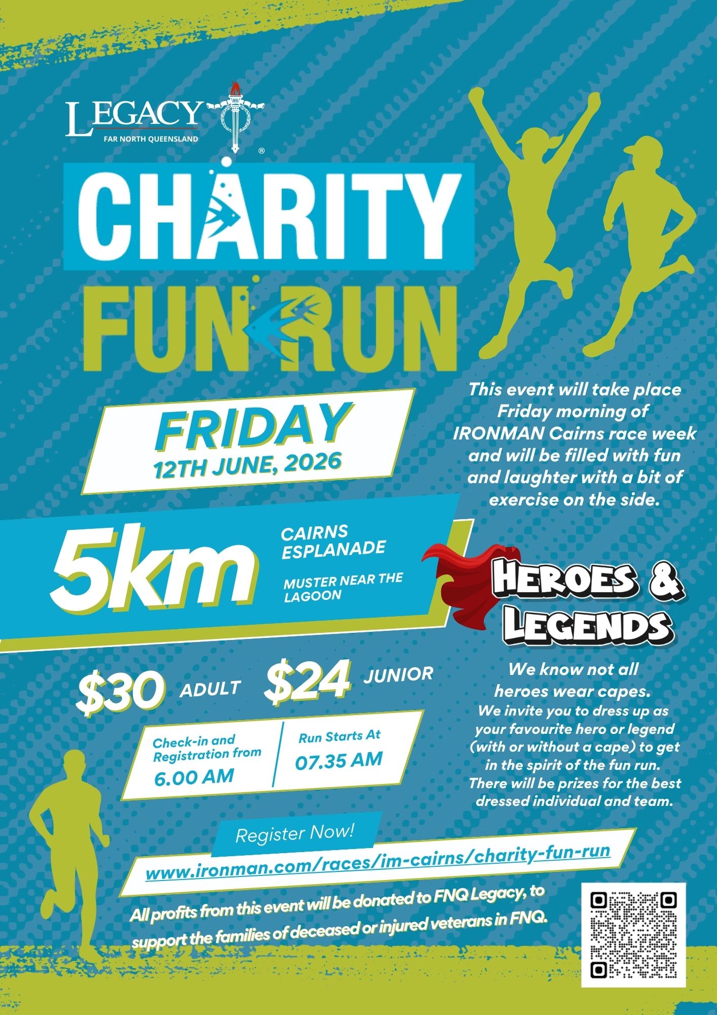 We know not all heroes wear capes.We invite you to dress up as your favourite hero or legend (with or without a cape) to get in the spirit of the fun run.