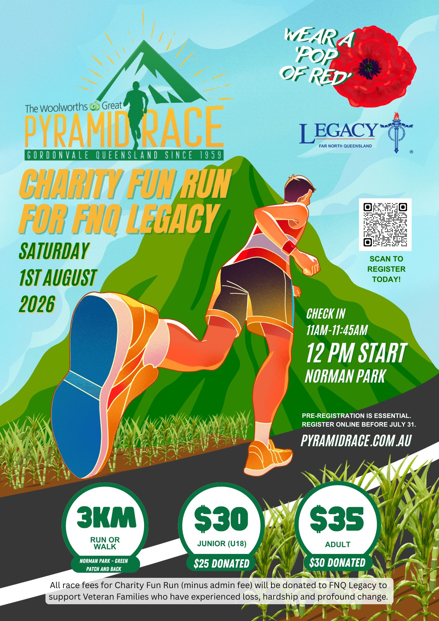 This April, help us raise funds to support the families of veterans who have died or have been seriously injured. All proceeds from your entry fee will be donated to FNQ Legacy.